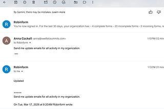 Turn on email alerts for all activity in Robinform