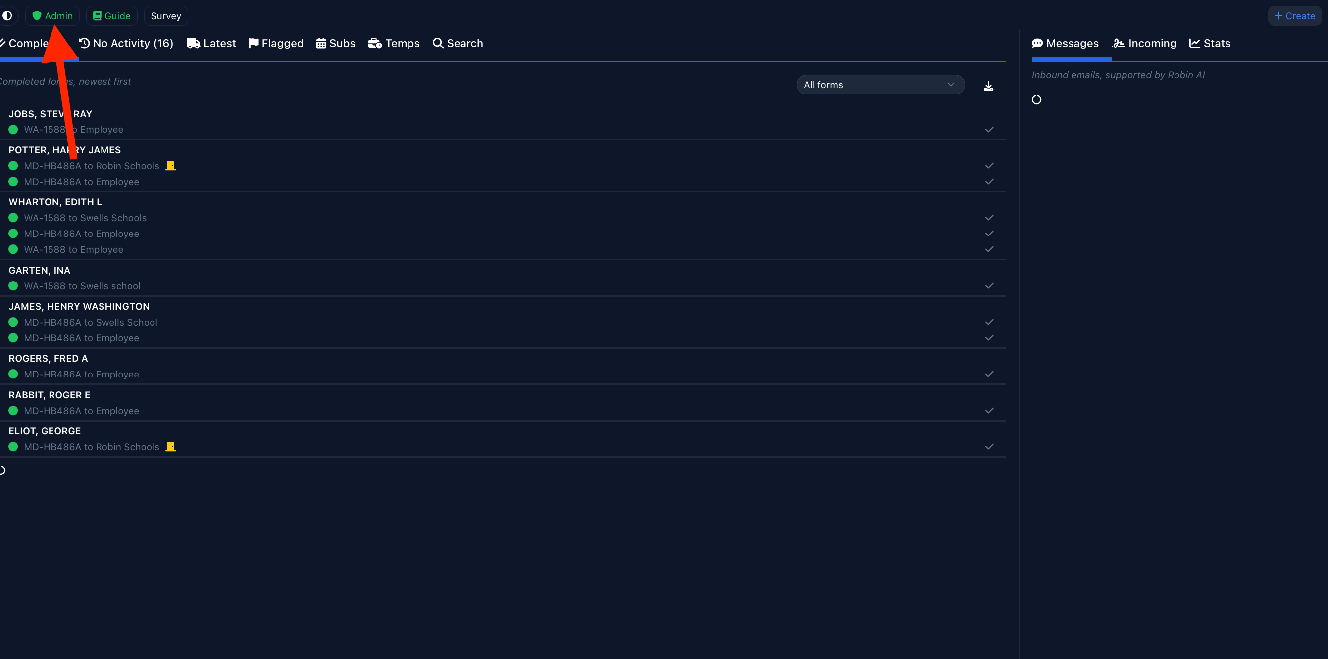 First, navigate to the admin settings, by clicking “Admin” or “User” in the upper left hand corner of your dashboard.
