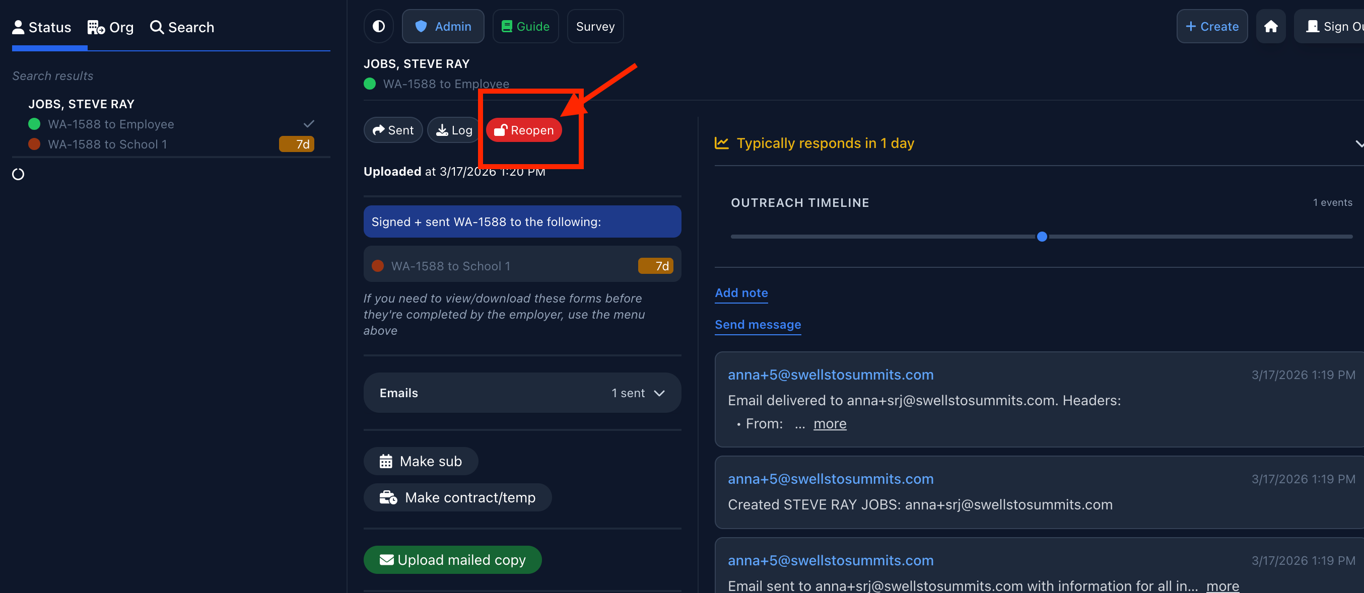Re-send forms to candidates, substitutes, and returning employees