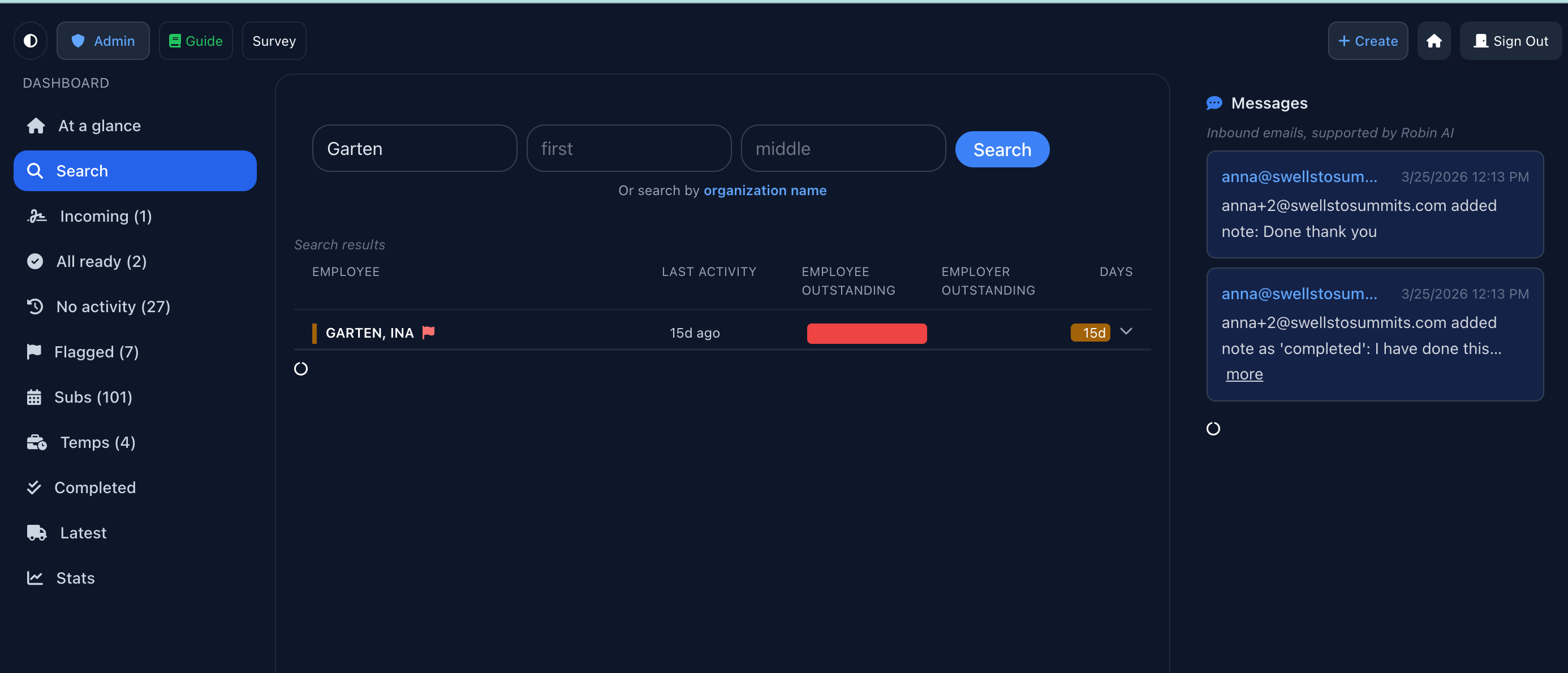 See a quick snapshot of the latest forms sent. All forms are organized by the employee’s name. You can quickly see the status of specific forms for employees, whether you are waiting on the employee to complete their information or waiting for a response from past employers.