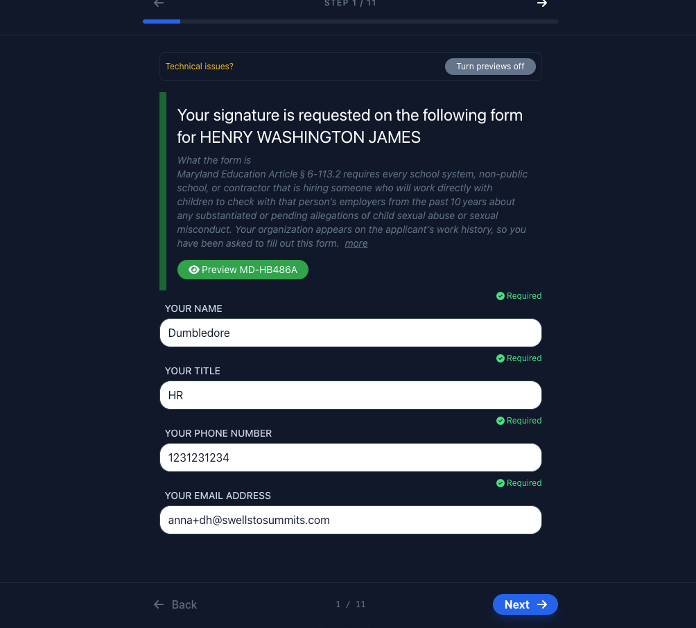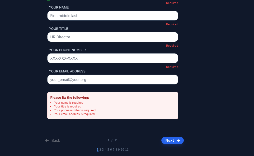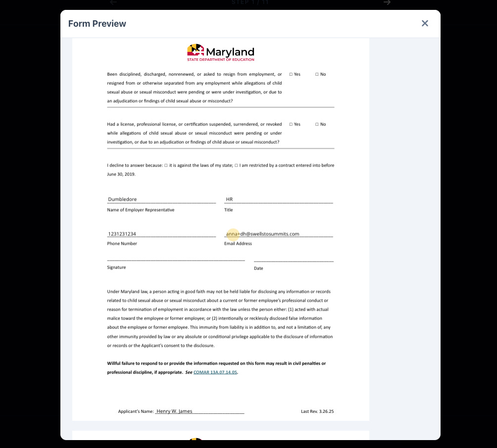 When an employee or applicant receives a form to fill out they will be guided through each step, reducing the amount of incomplete forms requiring manual follow-up. Below are the highlights from this flow.
