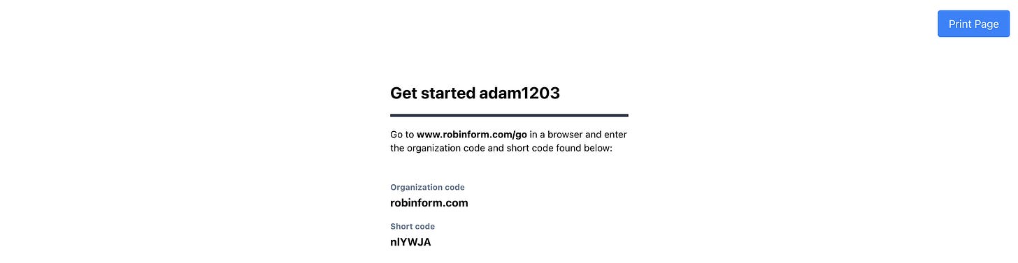 When you create a new employee form, you will see an in-office button at the top of the detail view. Selecting that will open a new window that you can print and give to employees while they’re in the office so that they can get started without signing into their email inbox.