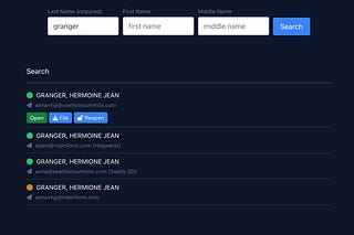 Finding forms for a specific employee or organization via search